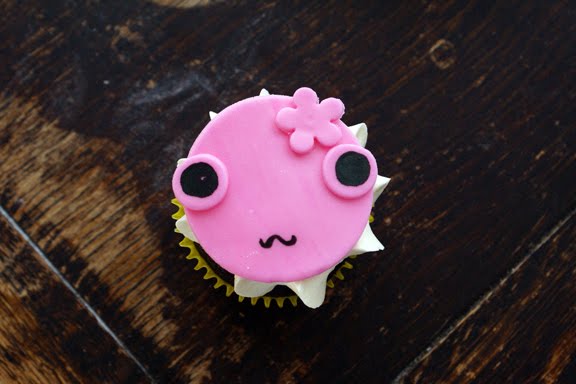 Do you know the brilliant illustrators of Meomi? They make the cutest characters, including these soon to be even more famous ones. Monice phoned me a few months ago to request very special themed cupcakes for her daughter Dakota's birthday, Octonauts themed! The Octonauts are a creation of Meomi, and there are storybooks featuring some crazy characters and cool, bonkers undersea adventures. Dakota's fave characters are Tweek the Bunny, Kwazii the Kitten and Barnacles the Bear, so I spent many hours slaving away in creating these adorable little faces out of fondant and edible marker, and also decided to make the pink jellyfish perplexed face too!